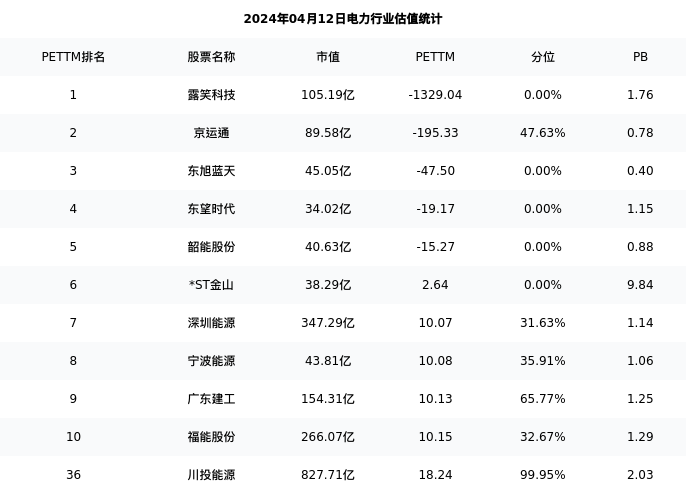 从估值角度看:川投能源最新市盈率PETTM为18.24,在行业内排名32/98,处于99.95分位。