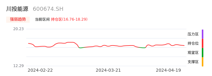 我们来看一下该股的九方特色指标强弱趋势的情况:川投能源自04月08日从观望区上穿到持仓区。股价近期在多头区域回调整理。后续重点关注多空分界点的争夺:16.76元。如未能有效站稳则可能重新回到空头行情。
