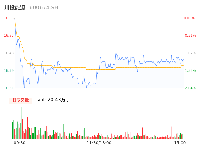 04月29日,川投能源收报16.44,股价涨幅-1.26%,成交金额3.35亿元,换手率0.42%。