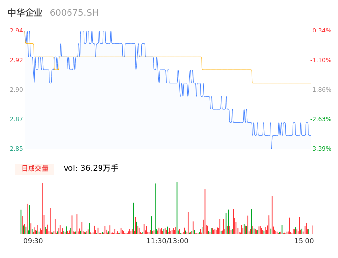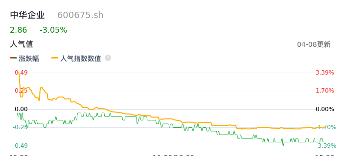 04月08日,中华企业收报2.86,股价涨幅-3.05%,成交金额1.05亿元,换手率0.60%。