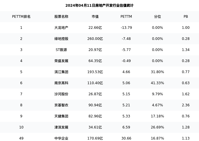 从估值角度看:中华企业最新市盈率PETTM为30.66,在行业内排名48/97,处于16.87分位。
