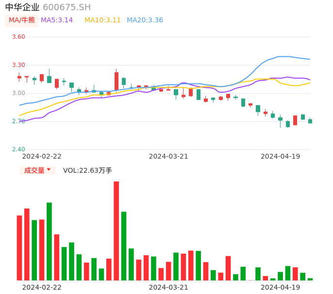 04月19日,中华企业收报2.68,股价涨幅-1.47%,成交金额6112.49万元,换手率0.37%。