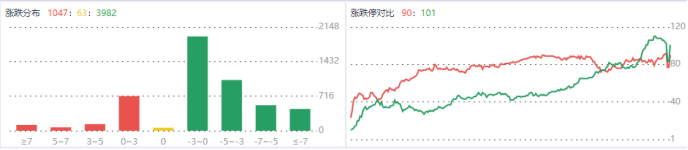 主题板块上,开盘破净股板块异动明显,中字头+XX类大涨,大屁股中国铁建换手冲击涨停,破净银行类大涨,郑州商行首板,老人气破净美凯龙出门一字(对于港股美凯龙盘中大涨50+%);20cm品种叠加工业互联网破净长荣股份涨停,中字头也在走强,中铁装配冲击20cm,中红医疗、中科美菱、中纺标联动大涨。