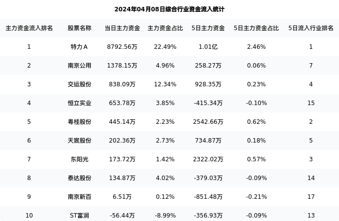 从主力资金流向来看,综合行业今日主力资金流入6.60亿元,在所有申万二级行业中排名:42/131。
