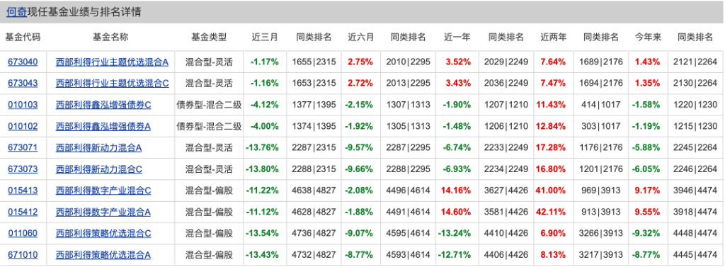 比如,何奇管理的西部利得新动力基金,2024年表现在A股主动权益基金中,能排入前30,但2025年以来,净值跌幅约5.88%。