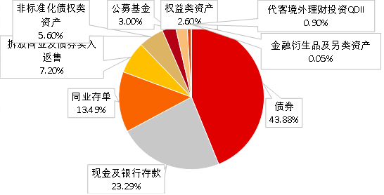 截至2025年一季度,全国共有215家银行机构和31家理财公司,共存续产品4.06万只,存续规模为29.14万亿元。理财产品资产配置以固收类为主,投向债券类、现金及存款、同业存单余额分别为13.68万亿、7.27万亿和4.20万亿,投向权益类资产仅2.60%,占比持续降低。