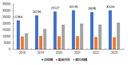 全国社会保障基金部网站披露历年的社保基金和基本养老保险基金的情况,截至2023年,社保基金和基本养老保险基金的总规模分别为30,146亿和18,467亿,大部分资金均选择委外。