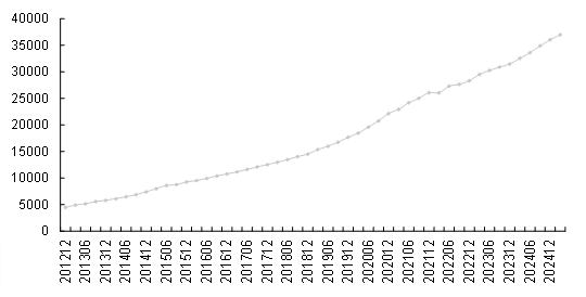 根据人力资源和社保保障部的数据,截至2025年一季度,企业年金实际运作规模为37,004亿。从历史来看,企业年金的规模持续高速增长。