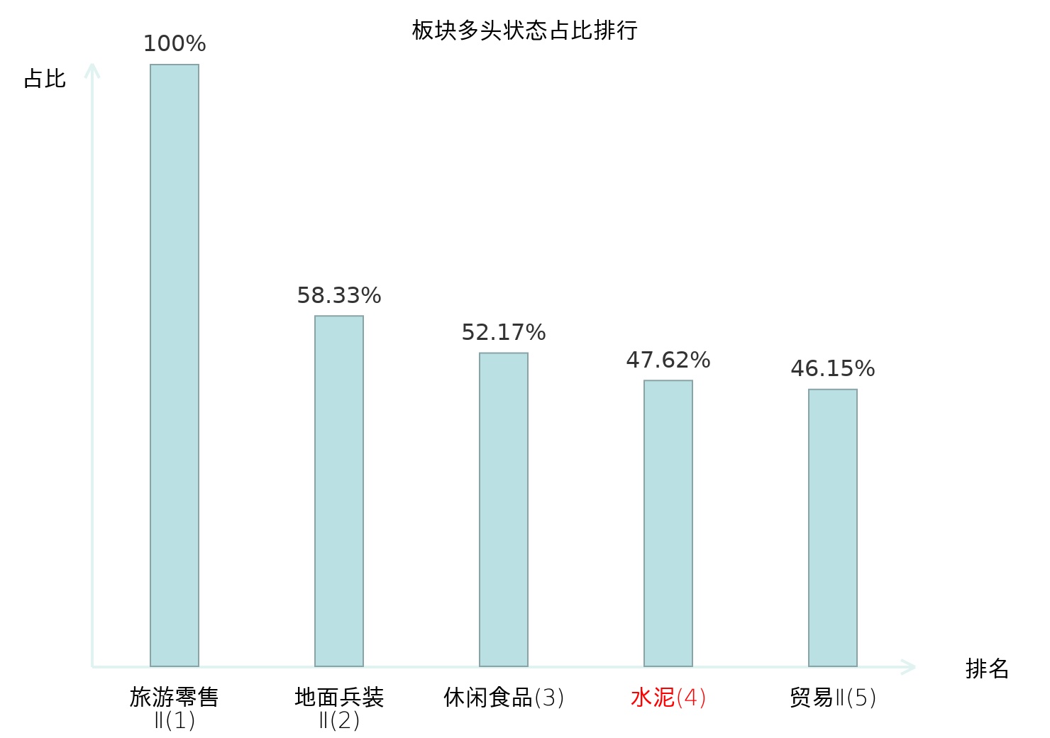 全市场所有行业板块中主力多头状态占比排名中,旅游零售Ⅱ板块位居第一。焦炭Ⅱ板块名次提升最快,较昨日上升82位。