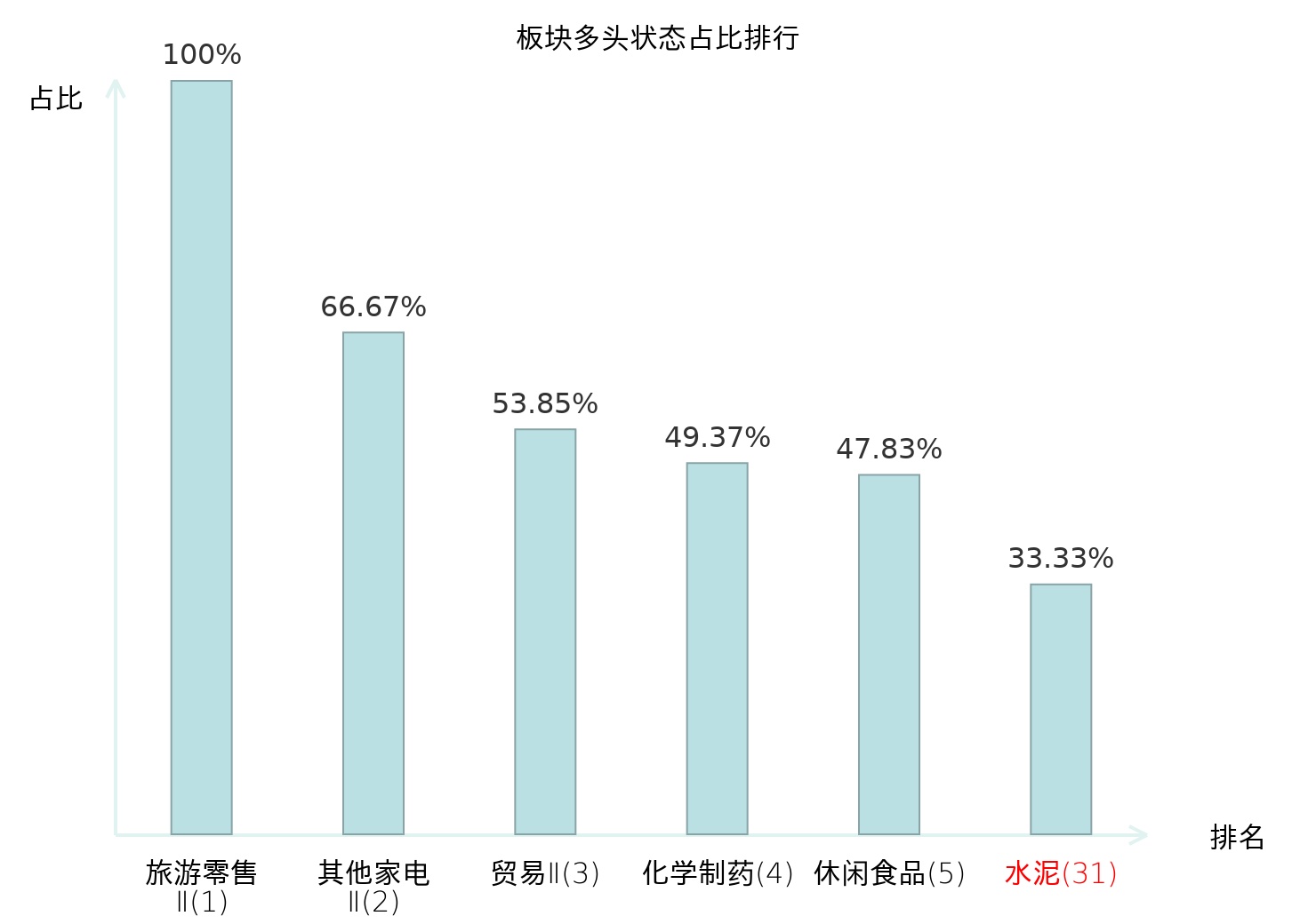 从主力宝信号数据分析,四川金顶所属的水泥板块中共有7只股票处于主力多头状态,主力多头状态占比在全行业中排名第31位,较昨日上升17位。排名的提升表明主力对水泥板块整体的看多意愿增强,为投资者提供了该板块受到资金青睐的信号。全市场所有行业板块中,旅游零售Ⅱ板块的主力多头状态占比最高,位居第一;互联网电商板块名次提升最快,较昨日上升55位。这些变动揭示了不同行业间主力资金动向的趋势,为投资者观察市场情绪和潜在投资机会提供了重要线索。