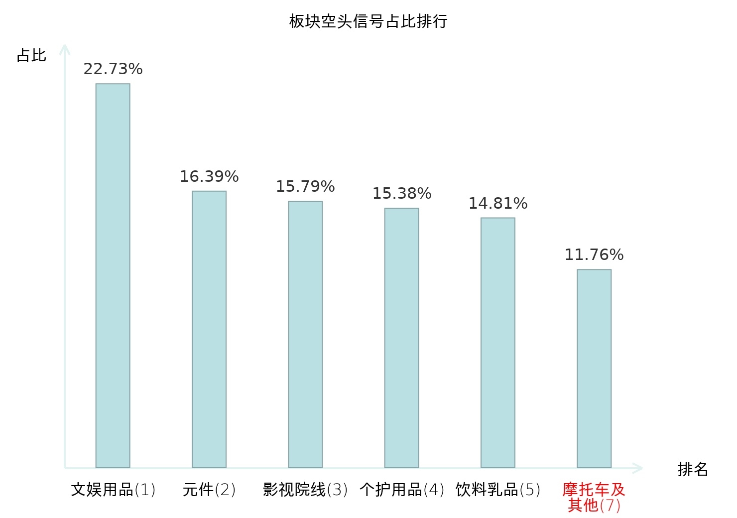 全市场所有行业板块中主力空头信号占比排名中,文娱用品板块位居第一。元件板块名次提升最快,较昨日上升128位。