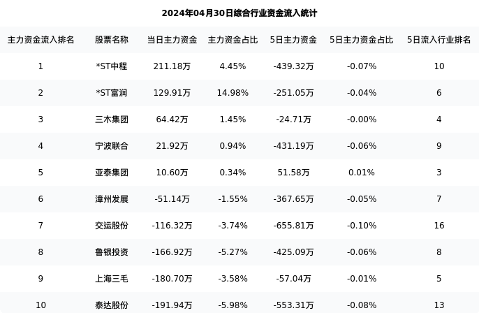 从主力资金流向来看,综合行业今日主力资金流入2.22亿元,在所有申万二级行业中排名:33/131。