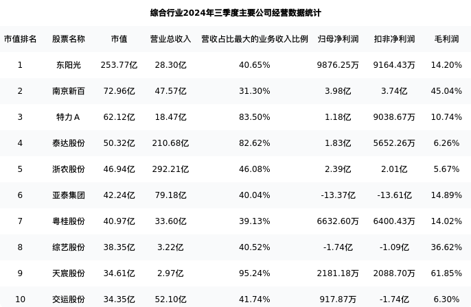 南京新百最新报告期数据为三季度,下表汇总了综合行业内市值靠前的公司三季度主要经营数据