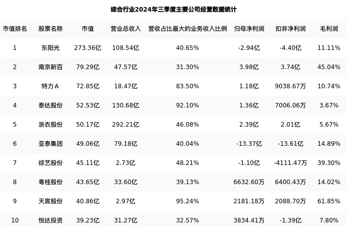 南京新百最新报告期数据为三季度,下表汇总了综合行业内市值靠前的公司三季度主要经营数据