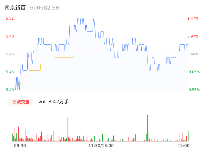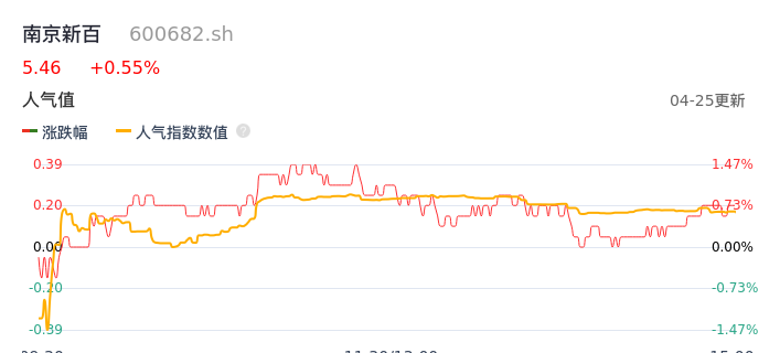 04月25日,南京新百收报5.46,股价涨幅0.55%,成交金额4598.73万元,换手率0.72%。