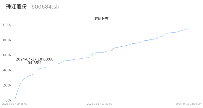 600684珠江股份2024年04月17日成交10.91万手,成交金额2927.16万元,相较昨日缩量3.88万手,换手率1.28%,成交清淡。