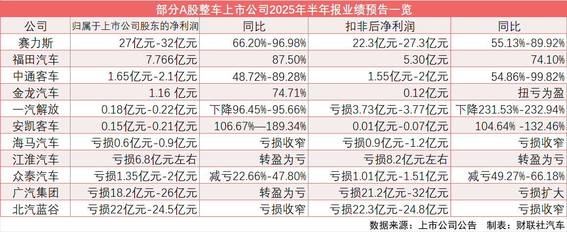 随着半年报放榜期的到来,多家车企陆续公布了2025年上半年的业绩预告。从已披露的11家车企数据来看,8家实现净利润增长、扭亏或者亏损收窄,折射出汽车行业整体向好发展态势。