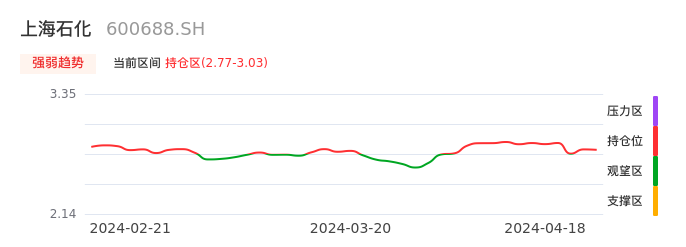 我们来看一下该股的九方特色指标强弱趋势的情况:上海石化自04月01日从观望区上穿到持仓区。股价近期在多头区域持续强势上扬,上升动能仍较为充足,可积极关注。后续重点关注上方压力位:3.03元是否能突破上攻。