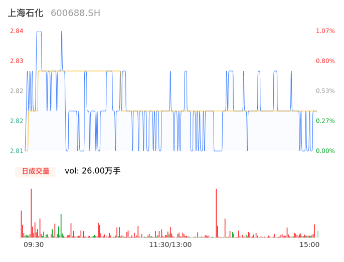 04月18日,上海石化收报2.81,股价涨幅0.00%,成交金额7339.80万元,换手率0.35%。