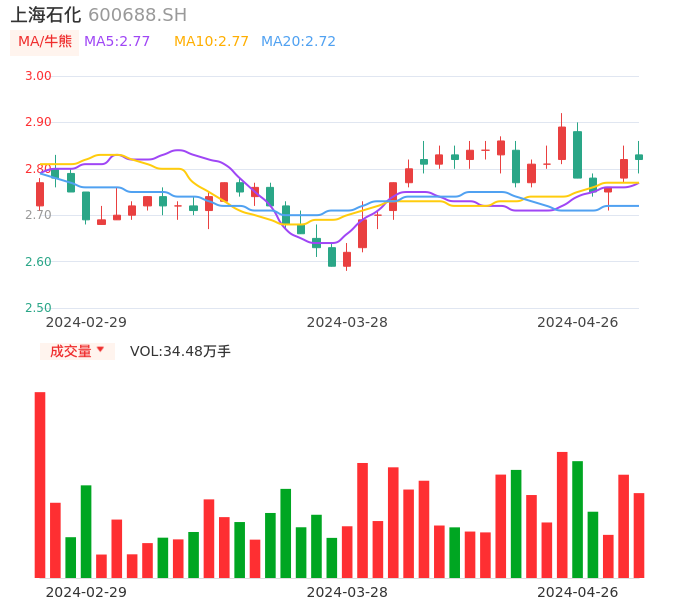 04月26日,上海石化收报2.82,股价涨幅0.00%,成交金额9709.30万元,换手率0.47%。