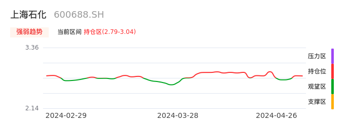 我们来看一下该股的九方特色指标强弱趋势的情况:上海石化近日从观望区上穿到持仓区。股价短期站稳多头区域,上升动能仍较为充足,可积极关注。后续重点关注上方压力位:3.04元是否能突破上攻。