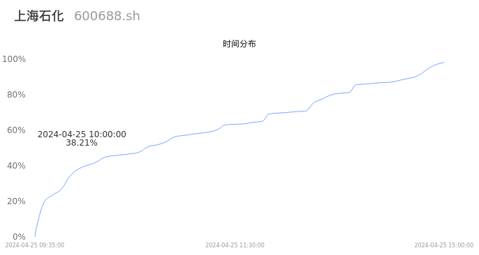 600688上海石化2024年04月25日成交39.79万手,成交金额1.12亿元,相较昨日放量17.35万手,换手率0.54%,成交清淡。