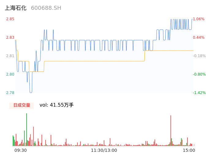 04月29日,上海石化收报2.85,股价涨幅1.06%,成交金额1.17亿元,换手率0.57%。