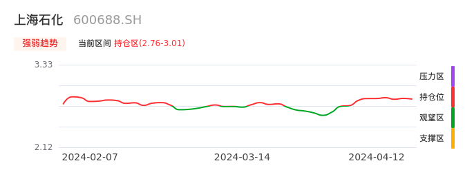 我们来看一下该股的九方特色指标强弱趋势的情况:上海石化自04月01日从观望区上穿到持仓区。股价近期在多头区域持续强势上扬,上升动能仍较为充足,可积极关注。后续重点关注上方压力位:3.01元是否能突破上攻。