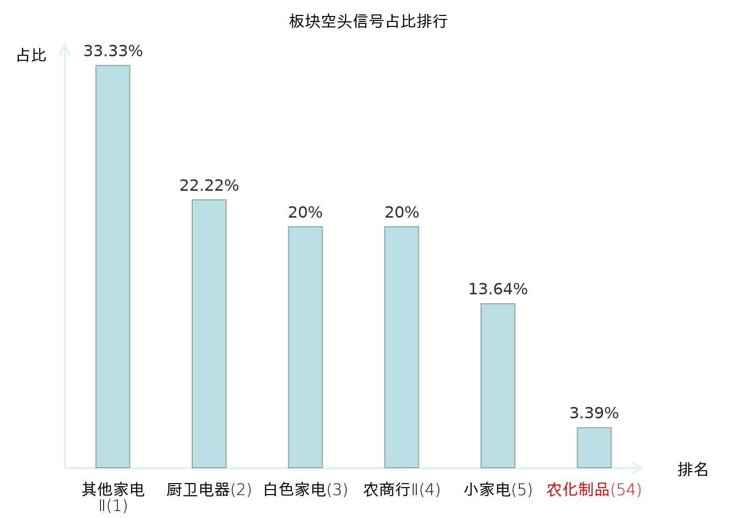 全市场所有行业板块中主力空头信号占比排名中,其他家电Ⅱ板块位居第一。地面兵装Ⅱ板块名次提升最快,较昨日上升107位。