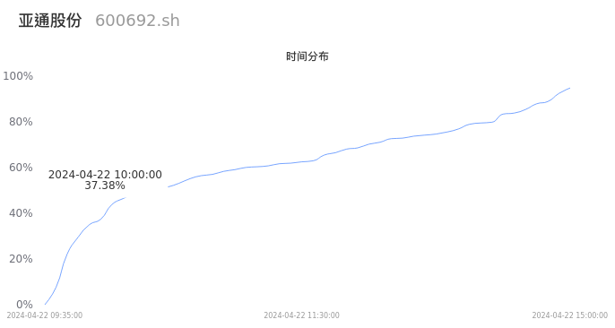 600692亚通股份2024年04月22日成交3.38万手,成交金额1548.09万元,相较昨日缩量7176手,换手率1.32%,成交清淡。