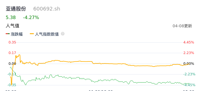 04月08日,亚通股份收报5.38,股价涨幅-4.27%,成交金额5866.51万元,换手率4.23%。