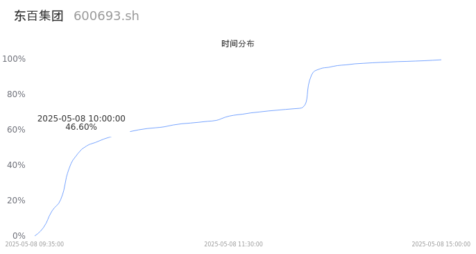 600693东百集团2025年05月08日成交116.40万手,成交金额8.01亿,相较昨日放量57.29万手,换手率13.40%,成交活跃。