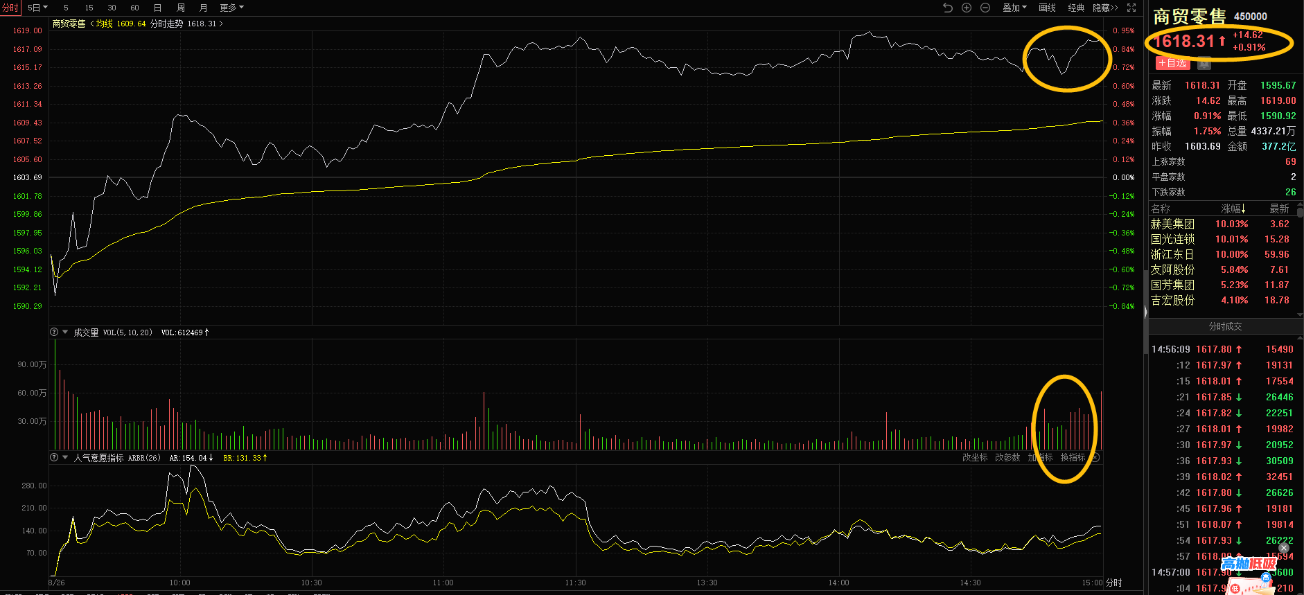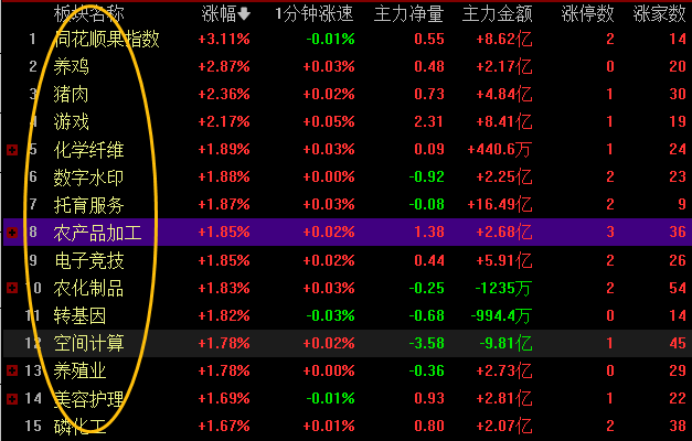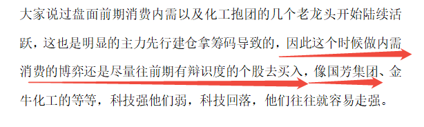 昨天在午间复盘中就提示消费内需的低吸机会,今天零售方向继续低开走强,其中在尾盘的时候零售方向有明显的资金抢筹迹象国光连锁直接上板。我们提示的国芳集团尾盘一度8个点,收盘也有5个点+。另外东百集团中百集团永辉超市也有不同程度的拉升。这些都是前期比较有辨识度的一些标的,如果昨天或者今天已经拿了先手的,对于明天的操作则会比较灵活些,预计这个位置指数延续震荡的走势那么大消费还是有继续的上涨预期的,短期消费也有一定的补涨空间,毕竟今年消费中不少细分方向还是下跌的。近期白酒已经先行转涨。后续可以关注消费里的轮动,食品饮料、旅游酒店餐饮等等。