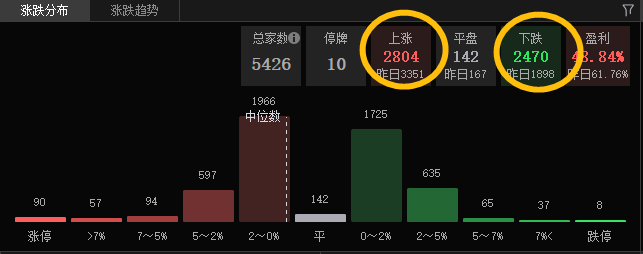 红盘个股2800家,虽然指数调整居多,但是个股表现还尚可,尤其是涨停还有90只,跌停板8只,其中近期热门的液冷人气中军淳中科技跌停,对高位股的资金有一定的影响。