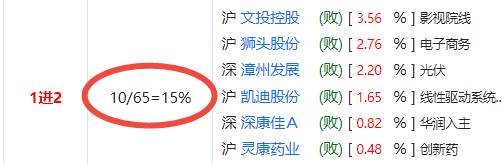 最后再回到我们近几天一直在讲的短线接力情绪上目前1晋2的成功率仍然不高,周四7%,随后连续2天在15%,因此喜欢做接力或者打板的同学还需谨慎,看看明天会不会有提升。