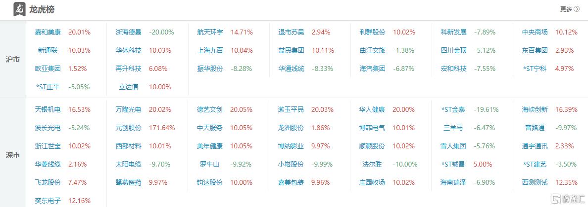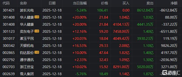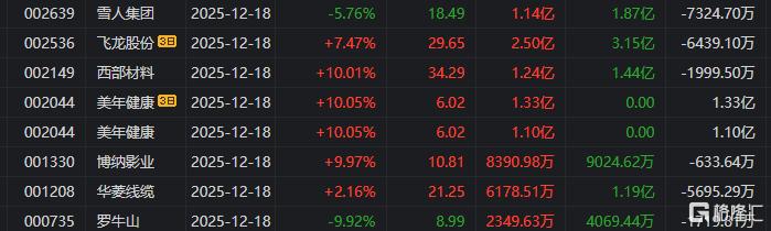焦点股方面,零售板块百大集团6连板、南京商旅9天5板,实控人变更的胜通能源5连板、皮阿诺4连板,商业航天概念股顺灏股份15天8板,影视股博纳影业9天5板。