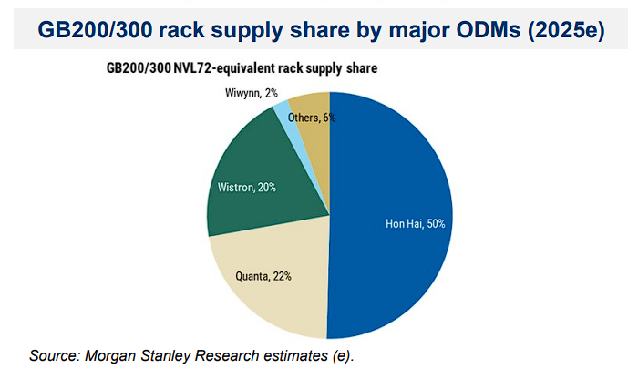 报告强调,随着机柜设计从单个GPU升级转向整个机架系统(Rack)的集成设计,拥有强大整合能力和稳定交付记录的ODM厂商,如广达(Quanta)、富士康(Foxconn)、纬创(Wistron)和纬颖(Wiwynn),将在GB200/300机柜供应中占据主导地位。