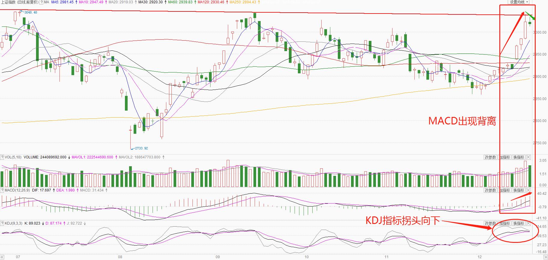 2. 技术分析:上证震荡十字星于均线上方,均线发散向上拐头,KDJ拐头往下,MACD背离,量能萎缩程度不大,短期继续在3014—3030区间震荡夯实。