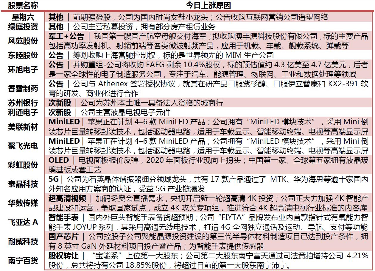 连板龙头:东睦股份5连板;星期六、绿庭投资、环旭电子、南京证券4连板;飞亚达A、美联新材、彩虹股份、风范股份3连板。