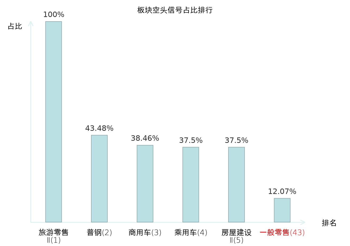 全市场所有行业板块中主力空头信号占比排名中,旅游零售Ⅱ板块位居第一。普钢板块名次提升最快,较昨日上升114位。