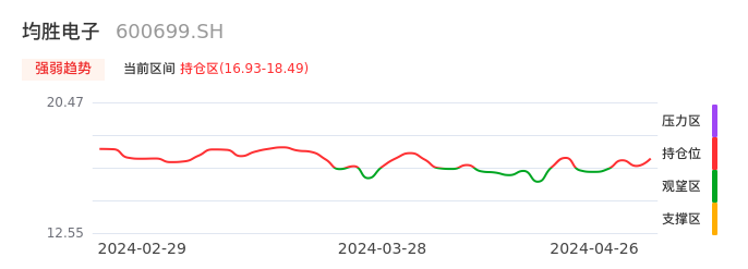 我们来看一下该股的九方特色指标强弱趋势的情况:均胜电子近日从观望区上穿到持仓区。股价短期站稳多头区域,上升动能仍较为充足,可积极关注。后续重点关注上方压力位:18.49元是否能突破上攻。