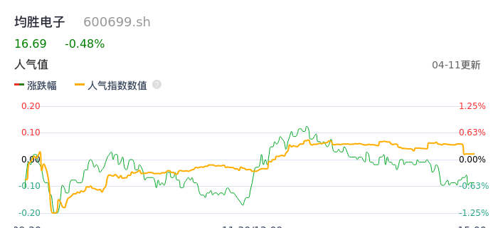 04月11日,均胜电子收报16.69,股价涨幅-0.48%,成交金额2.02亿元,换手率0.88%。