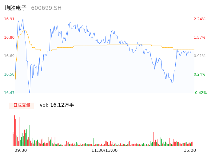 04月15日,均胜电子收报16.73,股价涨幅1.15%,成交金额2.70亿元,换手率1.18%。