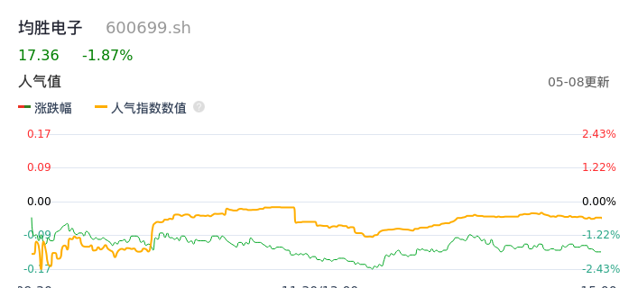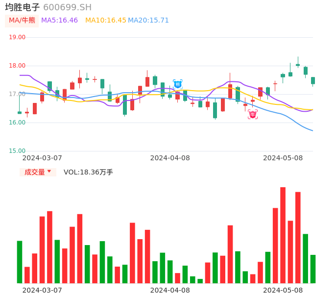 05月08日,均胜电子收报17.36,股价涨幅-1.87%,成交金额3.20亿元,换手率1.34%。