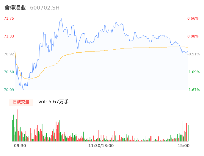 04月18日,舍得酒业收报70.97,股价涨幅-0.43%,成交金额4.04亿元,换手率1.71%。