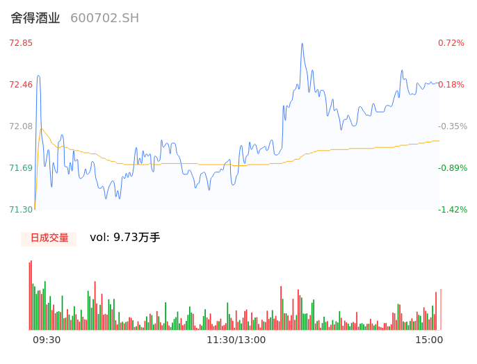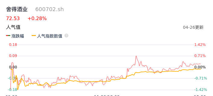 04月26日,舍得酒业收报72.53,股价涨幅0.28%,成交金额7.00亿元,换手率2.93%。