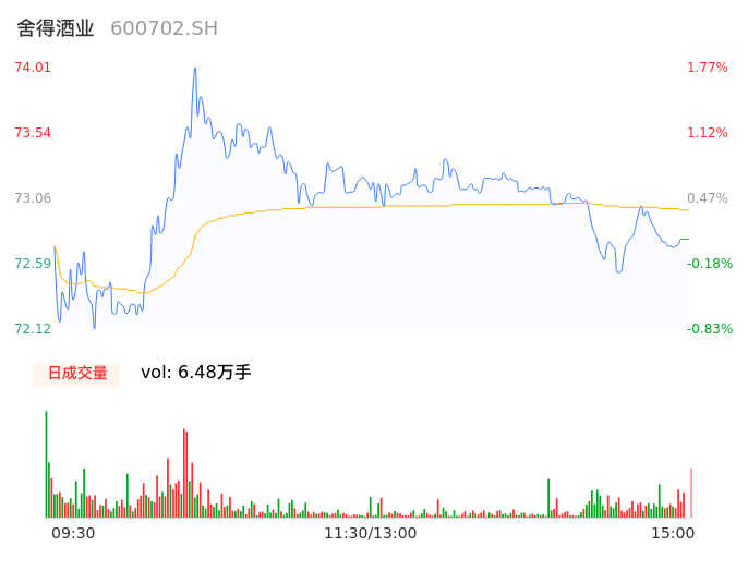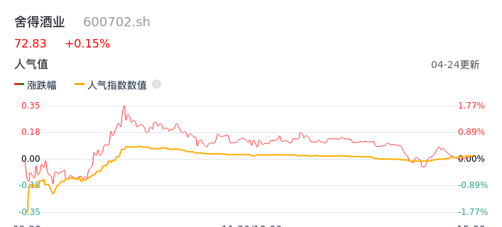 04月24日,舍得酒业收报72.83,股价涨幅0.15%,成交金额4.73亿元,换手率1.95%。