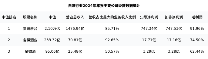 舍得酒业最新报告期数据为年报,下表汇总了白酒行业内市值靠前的公司年报主要经营数据