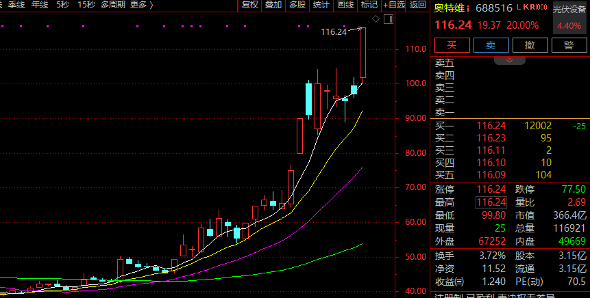 早盘太空光伏概念震荡拉升,双良节能涨停,奥特维(688516)20%涨停,迈为股份、帝科股份、国晟科技、连城数控、钧达股份涨幅靠前。