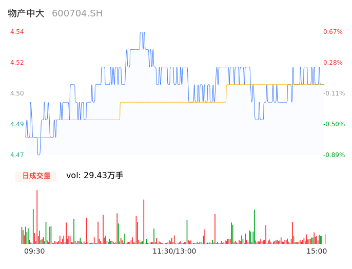 04月25日,物产中大收报4.51,股价涨幅0.00%,成交金额1.33亿元,换手率0.58%。